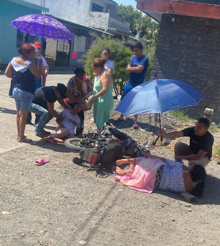 Dos femeninas resultaron lesionadas, después de ser atropellados por un motociclista, por la colonia El Tacahuite, así como también autoridades de vialidad y preventivas.