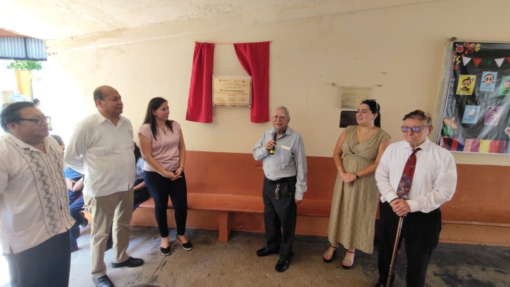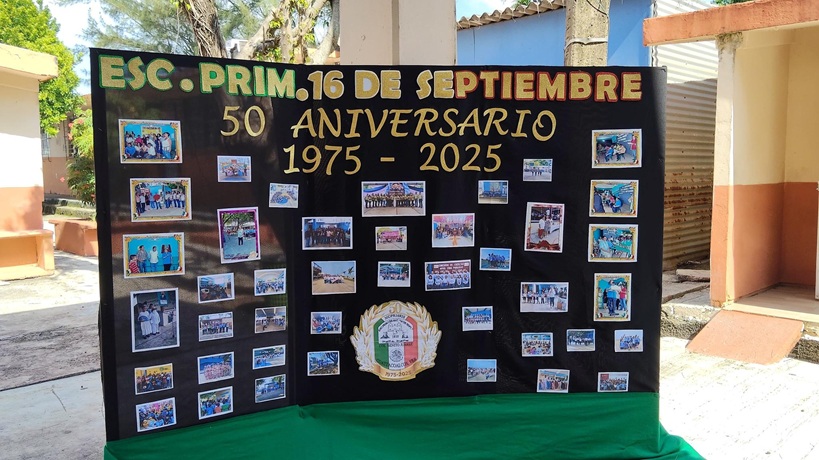 La comunidad de la Escuela Primaria “16 de Septiembre” celebró medio siglo de trabajo educativo con una jornada que combinó memoria y fiesta: develación de una placa conmemorativa, bailes folclóricos y música de marimba.