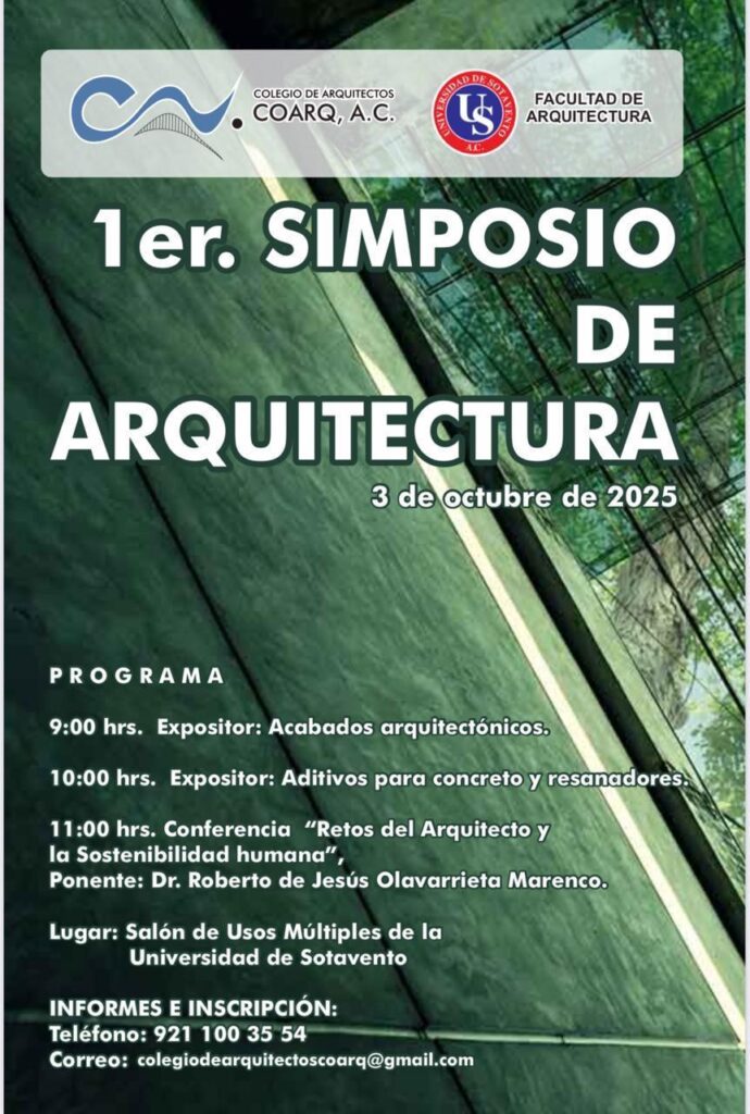 El 1er. Simposio de Arquitectura, se llevará a cabo el 3 de octubre de 2025 en el Salón de Usos Múltiples de la Universidad de Sotavento.