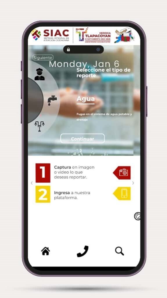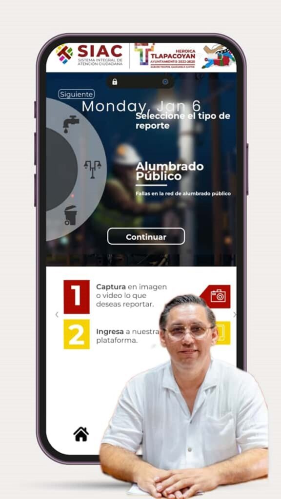 La aplicación SIAC, Tlapacoyan está disponible y puede ser descargada desde Play Store en los dispositivos móviles de Android, donde el ciudadano puede emitir reportes en el rubro de agua y saneamiento, alumbrado público, limpia pública, protección civil, así como también realizar quejas y denuncias, de acorde a los apartados que permite la plataforma móvil.