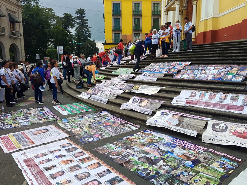 - Concentrados en las escalinatas de la catedral metropolitana, desplegaron lonas con fotografías de sus familiares que llevan años sin ser localizados.