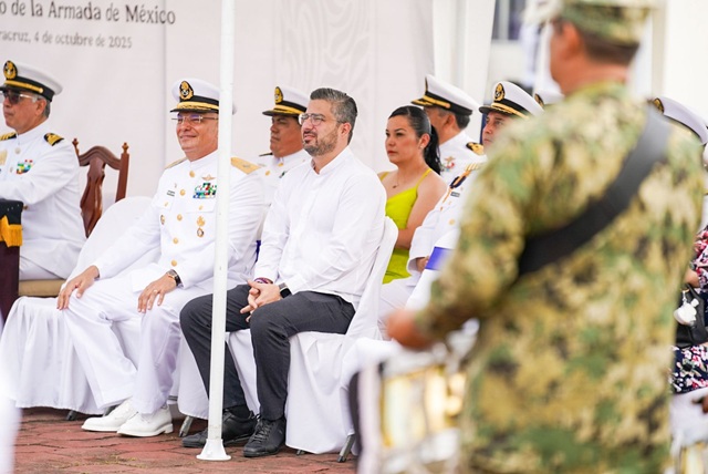 La agenda de actividades del legislador local inició en la explanada de la Base Naval del Golfo, donde acudió como invitado para celebrar junto a autoridades navales, militares y funcionarios de los tres niveles de gobierno la creación el 4 de octubre de 1821 de la Armada de México.