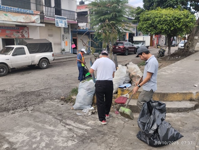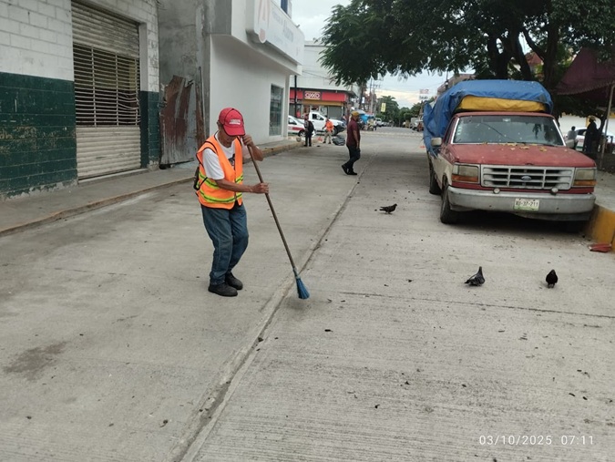 Con el trabajo y compromiso del personal de Limpia Pública a cargo de Alejandro Ochoa se dan a la tarea de barrer, recolectar y limpiar desde la zona del Monumento a los Niños Héroes hasta la Escuela de Enfermería pues es necesario regresarlo a un estado limpio tras el ajetreo comercial que se genera en Villa Independencia cada jueves.