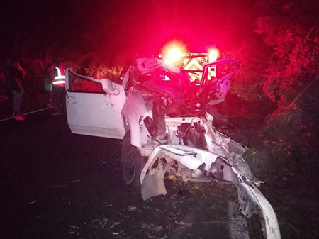 Hasta el momento los cuerpos no han sido identificados de las dos personas que perdieron la vida lamentablemente en el interior de su camioneta Chevrolet S10, unidad que quedó destrozada después del fuerte impacto contra el árbol.