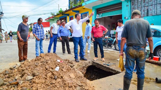 - El mandatario local, dialogó con los afectados y constató los trabajos que se implementan en dicho sector, para restablecer el servicio de agua municipal