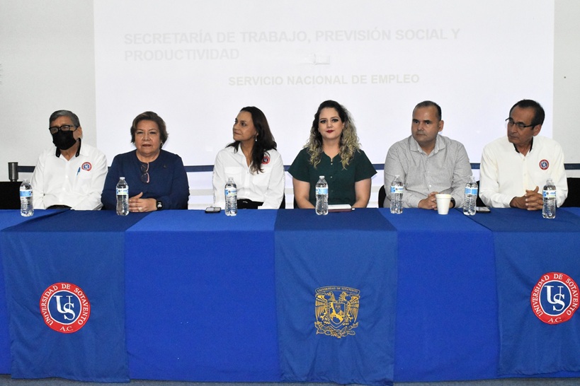 La reunión estuvo encabezada por la directora del Servicio Nacional de Empleo (SNE) en Veracruz, Shaidy Garasine Rebolledo Grajales, y la rectora de la Universidad de Sotavento, Dra. Rosa Aurora Rodríguez Caamaño.