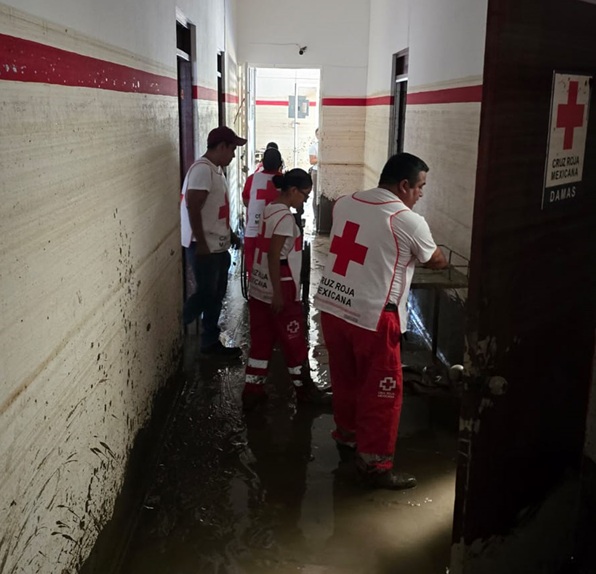 Integrantes de la delegación de la Cruz Roja Mexicana de Martínez de la Torre acudieron a Poza Rica para brindar apoyo a la población afectada.
