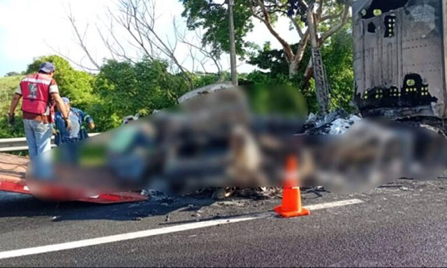 De acuerdo con los primeros reportes, el impacto fue tan fuerte que el automóvil fue arrastrado varios metros, antes de que se desataran las llamas. El fuego alcanzó la cabina del tráiler y a varios animales que eran transportados, los cuales murieron calcinados en el lugar.