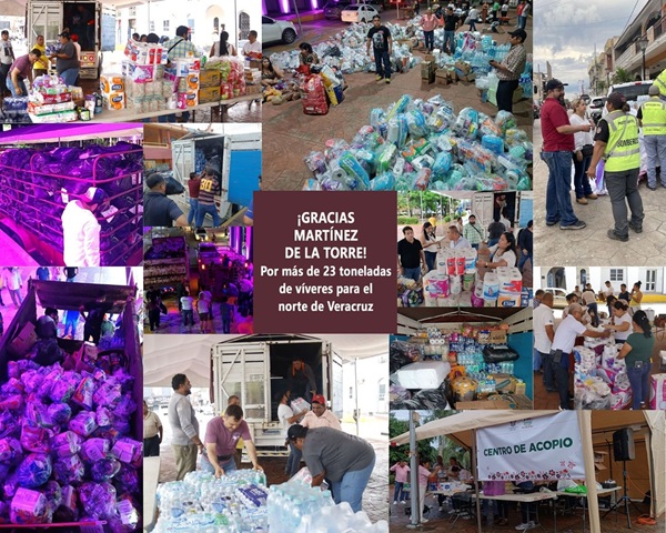 - Al momento se han enviado más de 10 toneladas de víveres al norte de Veracruz en la primera etapa, y en la segunda, se entregarán 13 toneladas de víveres y ropa este lunes. ¡Gracias Martínez!