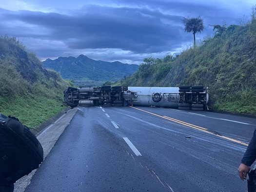 Volcadura de una pipa de gas sobre la autopista Cardel – Poza Rica