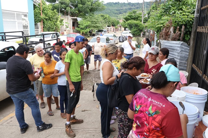 Al lugar acudió personal del sistema DIF Municipal en dónde se repartieron alimentos en la mañana y en la tarde. Y así mismo se trabajó en brigadas de apoyo en los hogares para ayudar a sacar colchones, muebles, refrigeradores y muchos artículos del hogar.