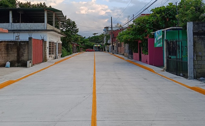 -Construcción de pavimento y guarniciones en calle Vicente Lombardo, colonia Primero de Mayo.