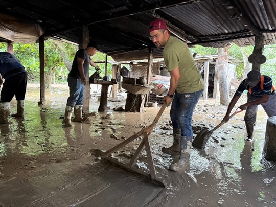 El legislador organizó cuadrillas para retirar lodo de casas y escuelas, limpiar pisos y paredes, y con apoyo de retroexcavadora, despejar accesos y patios, brindando atención inmediata a los espacios más afectados.