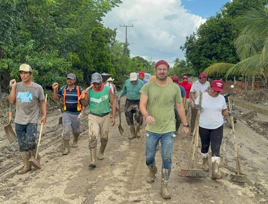 Con el firme compromiso de apoyar a las familias afectadas por las recientes inundaciones, el diputado Daniel Cortina, junto a los pescadores de La Mata y su equipo de trabajo, continuó este día las labores de limpieza en las comunidades de Higueral, Juana Moza, Frijolillo, Ojite y en las colonias Framboyanes y Federico Blanco.