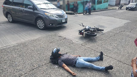 El accidente ocurrió a las 09:30 horas, cuándo el motociclista identificado como Rigoberto, circulaba a bordo de su caballo de acero en dirección a la zona de Libramiento y procedente de la zona centro, al pasar por dicho crucero lo impacta una camioneta y termina por rodar sobre el pavimento.