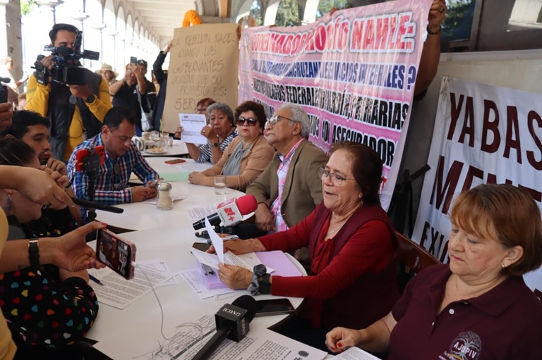Durante la rueda de prensa participaron también el maestro Rodolfo Suárez, la señora Esmeralda Gálvez, viuda de un maestro fallecido, y la secretaria de organización Olga Gutiérrez, quienes reiteraron que seguirán manifestándose “cada jueves” en la Plaza Lerdo hasta obtener una respuesta definitiva.