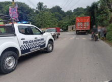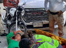 Sobre la banqueta quedó lesionado el motociclista Miguel Torres Carrillo Martínez de la Torre, Ver. Comprobable fractura de fémur, golpes contusos en diferentes partes del cuerpo, resultó