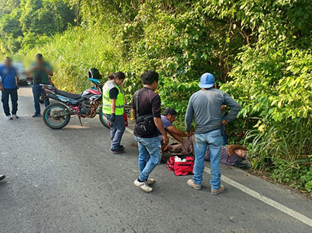 El accidente ocurrió a las 15:15 horas, sobre la carretera estatal Martínez – Misantla, a la altura de la localidad de Pueblo Viejo, por donde el motociclista identificado como el Eleuterio Córdoba, de 73 años de edad y vecino de la colonia Antorchista, al realizar una maniobra inesperada, presumiblemente invade el carril contrario y se estrella contra un automóvil Nissan Tsuru, lo que provocó que terminara con fractura expuesta y golpes contusos.