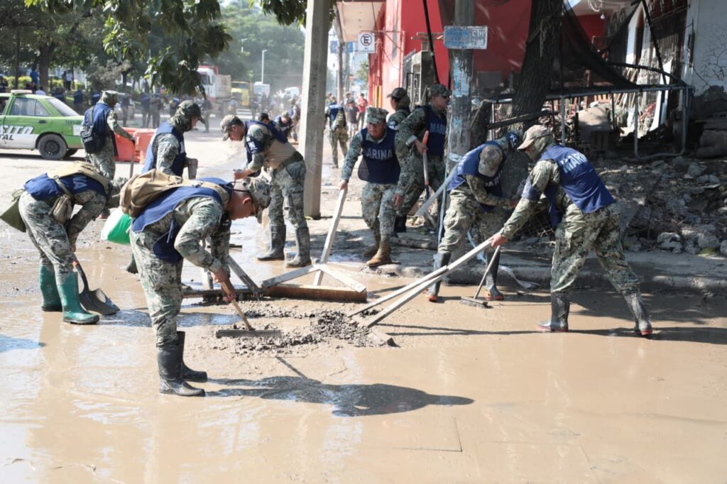 “La Presidenta no sólo vino, trajo prácticamente a todo el gobierno federal, y gracias a eso hoy tenemos avances muy importantes, con el Ejército Mexicano, la Secretaría de Marina, la Coordinación Nacional de Protección Civil, la Secretaría de Bienestar y la Comisión Nacional del Agua hemos logrado limpiar más del 65 por ciento del lodo y los desechos en Poza Rica”.