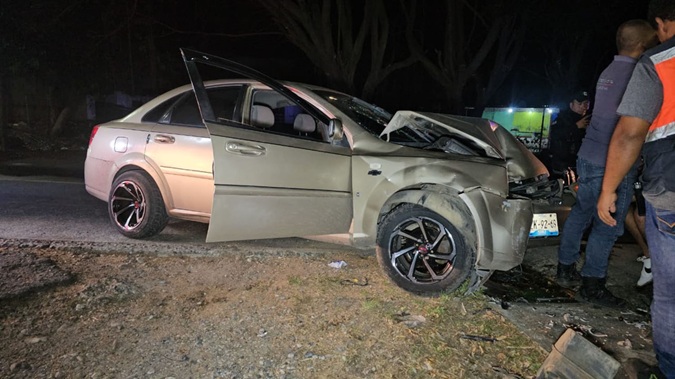 La unidad presentó daños en la parte delantera y en el parabrisas, pues se impactó contra el muro de contención de las letras de «Tlapacoyan».