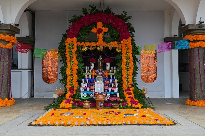 El altar fue elaborado por alumnas, alumnos y personal docente de la Escuela Secundaria y de Bachilleres Prof. Manuel C. Tello.
