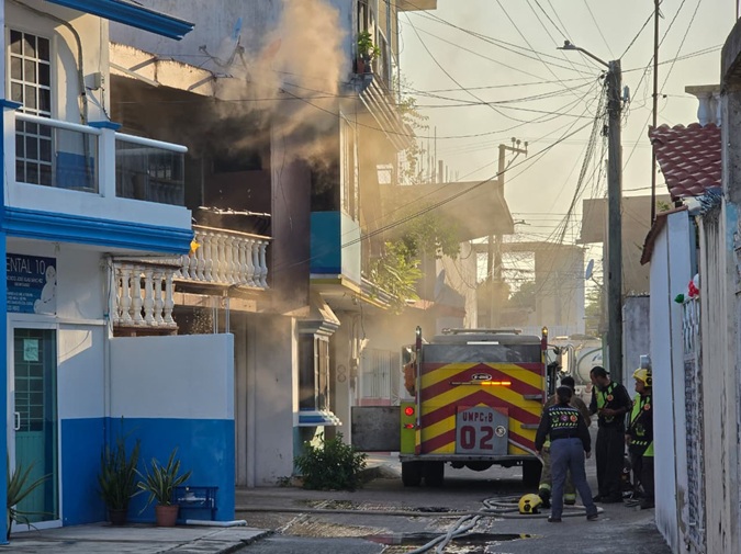 Mercancía que se encontraba en un local, quedó reducido en cenizas, luego de registrarse un incendio en un domicilio ubicado en la colonia Ejidal.
