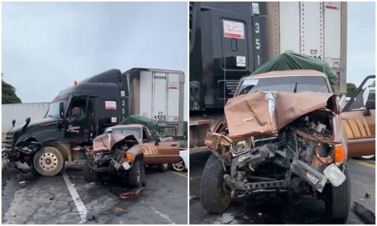El percance involucró a tres vehículos, entre ellos un tractocamión doble remolque perteneciente a la empresa García’s Trucking, el cual, de acuerdo con los primeros reportes, invadió el carril contrario al intentar incorporarse desde la mencionada carretera, impactando de frente a una camioneta Toyota que remolcaba un automóvil Toyota Celica con destino a Honduras.