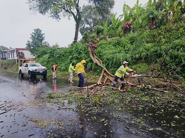 La caída del árbol se registró a la altura de la localidad de Tomata, donde el personal operativo de la unidad de Protección Civil se apersonó para implementar los trabajos pertinentes y de esta forma prever un accidente vial.