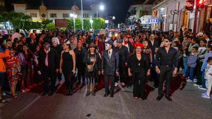 Con música, color y vestuarios que dan representatividad a los muertos, se llevó con gran éxito el espectacular desfile de día de muertos, como parte del programa “Todos Santos 2025”, organizado por el alcalde Salvador Murrieta Moreno, quien hizo partícipe a todas y todos los interesados para vivir una noche de terror.