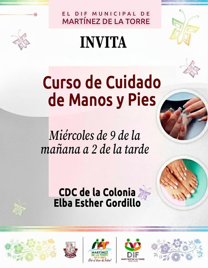 Las acciones en beneficio del cuidado del cuerpo y la imagen personal son parte del fortalecimiento de la salud de los martinenses, es por ello que el DIF municipal que preside la maestra Elvira Vázquez Mendoza promueve talleres de capacitación que se imparten en los Centros de Desarrollo Comunitario, tal es el caso del curso de “Cuidado de manos y pies”.