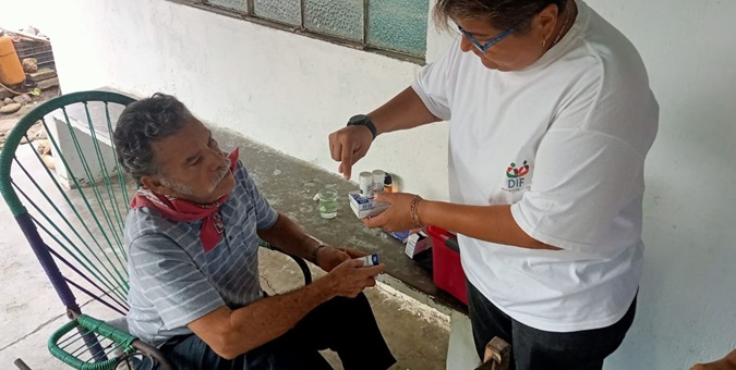 En esta ocasión, personal de la Coordinación Médica brindó atención a un adulto mayor con lesiones por pie diabético, a quien además se le entregó un aparato funcional para mejorar su movilidad y calidad de vida.