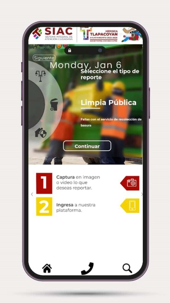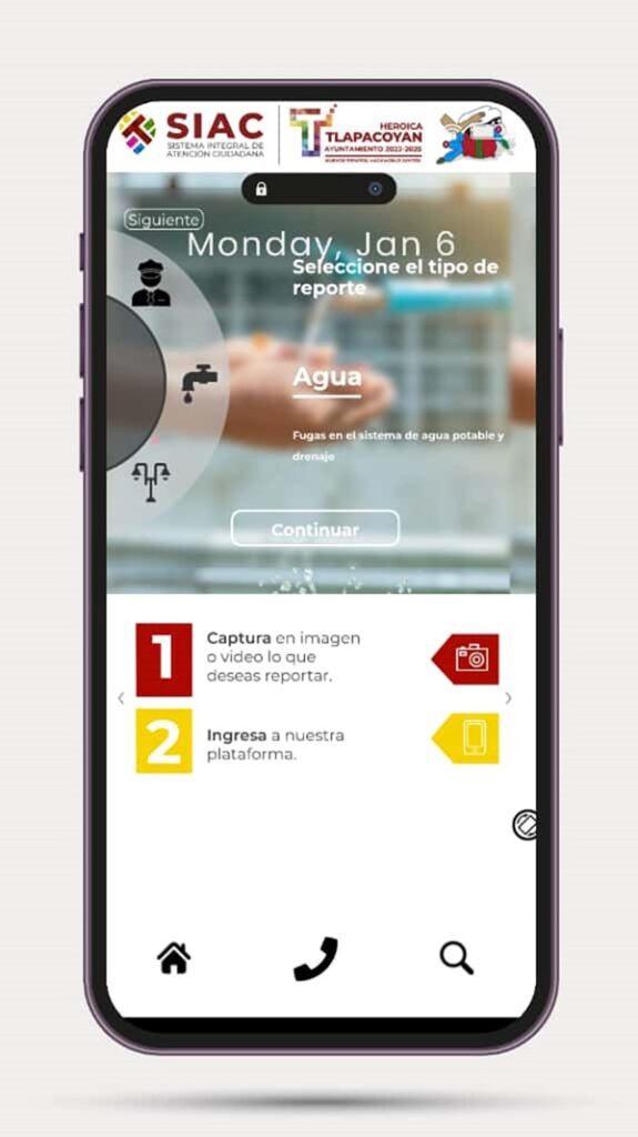 La aplicación SIAC, Tlapacoyan está disponible y puede ser descargada desde Play Store en los dispositivos móviles de Android, donde el ciudadano puede emitir reportes en el rubro de agua y saneamiento, alumbrado público, limpia pública, protección civil, así como también realizar quejas y denuncias, de acorde a los apartados que permite la plataforma móvil.