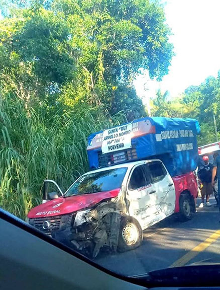 El accidente ocurrió la tarde de este domingo, sobre la carretera estatal Misantla – Martínez, justo a la altura de la curva del Zapote, por dónde una camioneta Nissan del transporte público rural, colisionó contra un camión materialista.