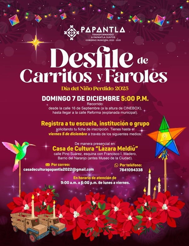 Desfile de faroles y carritos en Papantla Editor | noviembre 18, 2025 | ZONA NORTE | No hay comentarios Entradas relacionadas Se darán pláticas de Educación Vial dirigidas a adultos y niños No hay comentarios | Jun 26, 2023 EL CIUDADANO No hay comentarios | Sep 9, 2022 Tuxpan está listo para iniciar acciones preventivas contra la incidencia del dengue No hay comentarios | Ene 30, 2024 Reforma Constitucional en materia de la Guardia Nacional traerá paz y seguridad para México: Adriana Esther No hay comentarios | Oct 26, 2022