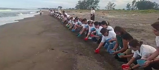 Personal de Farmacias Similares proveniente de los estados de Guerrero, Michoacán, Tabasco, Chiapas, Querétaro, Veracruz, Puebla y Morelos realizó tareas de limpieza en zona de playas y participó en la reintegración de tortugas.