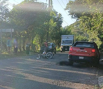 Inconsciente y tirado sobre la carretera, quedó un motociclista, juego de estrellarse contra una camioneta de frente, se esperaba la presencia de las autoridades de emergencia y de vialidad.