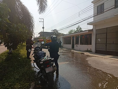 Elementos de la Secretaría de Seguridad Pública y policía municipal del grupo motorizado, cerraron la vialidad por este sector, todas las facilidades a los bomberos de hacer su trabajo, quiénes tuvieron que romper el candado para poder ingresar al interior donde se originó el siniestro.