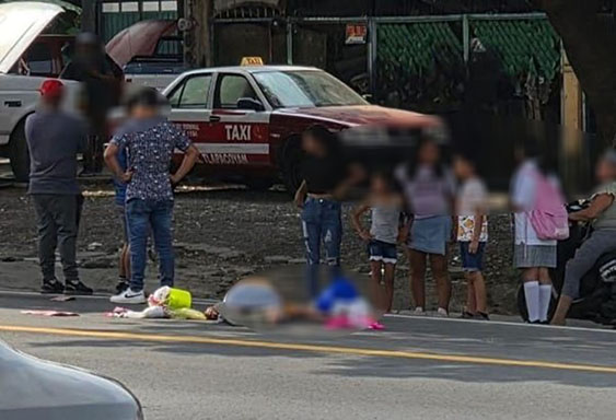 El accidente ocurrió frente a la negociación denominada «Pepes», por dónde caminaba una mujer de la tercera edad con sus Tlayoyos para su venta.