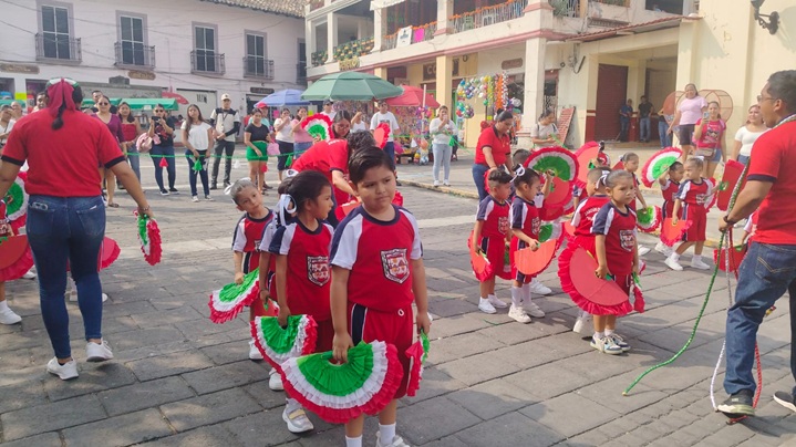 Caracterizados de adelitas, charros y atuendos tricolor para presentar sus tablas rítmicas, ante la presencia de las autoridades como el presidente municipal Dr. Celestino Pino Guevara y la Dra. Bertha Alicia Carro Barbosa, presidenta del sistema DIF, así como de los regidores, secretarias, secretarios y ciudadanía.