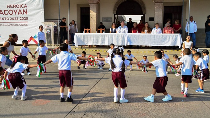 Fue en bajos del palacio municipal, donde el mandatario local en compañía de miembros del cabildo atestiguó a los distintos contingentes de alumnos quienes desarrollaron tablas rítmicas con atuendos y representatividad de personajes que enmarcan el inicio de la revolución mexicana de aquel 20 de noviembre de 1910.