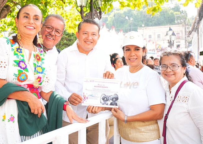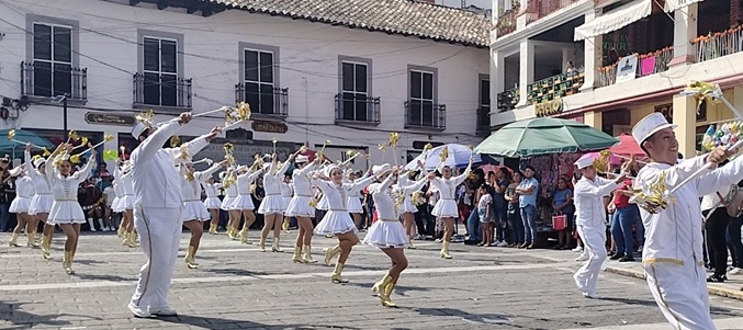 Con un elegante traje de bastoneras en blanco y dorado en combinación con una coordinación y destreza en sus ejecuciones que hicieron que los papantecos les brindaran varios aplausos a su paso en el recorrido que dio inicio en la calle 16 de septiembre.