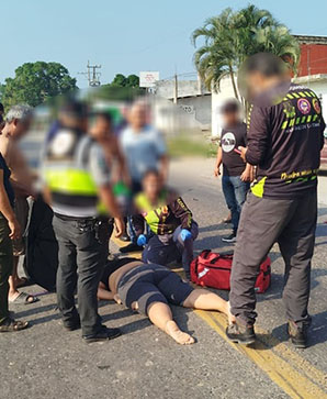 Mientras tanto paramédicos de protección civil y bomberos le brindaron la atención prehospitalaria a la víctima, debido a sus lesiones graves fue trasladada a un nosocomio para su atención médica y valoración.