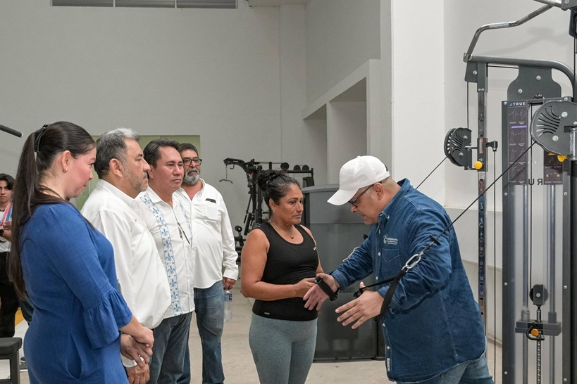 “Lo equipamos de la mejor manera posible: tiene 49 aparatos nuevos para ejercitarse, caminadoras, bicicletas estáticas, aparatos para actividades de fuerza y tenemos con mucho orgullo la participación de la escuela donde Bibi ha logrado la excelencia deportiva”, dijo.