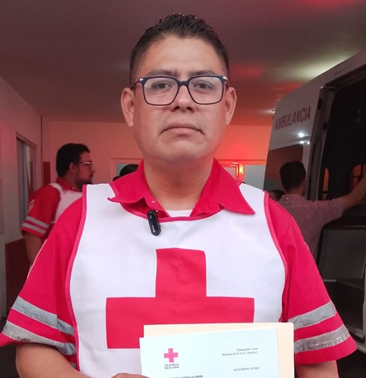 El Técnico en Urgencias Médicas Alberto García Guzmán recibió el nombramiento como coordinador de Socorro de la Cruz Roja Mexicana, delegación Martínez de la Torre.