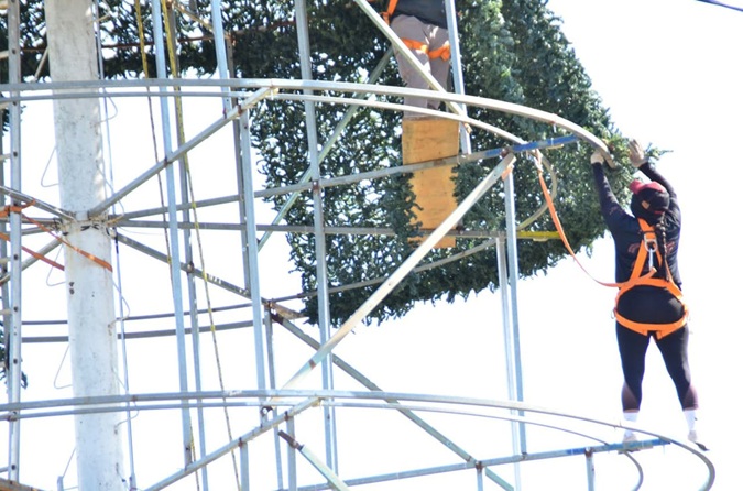 Ayuntamiento realiza instalación del árbol navideño más alto de la región