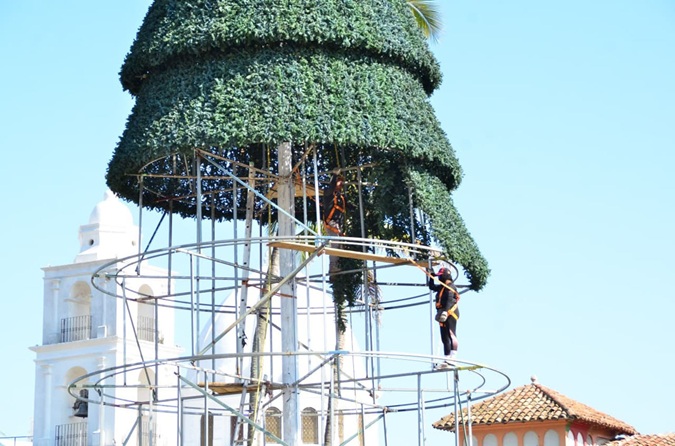 Es en el parque central “Luis Escobar Toledano”, donde el personal a cargo de implementar las acciones avanza de manera notoria en la colocación de las estructuras que estarán dándole forma al majestuoso árbol con motivo de las fiestas navideñas.