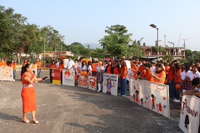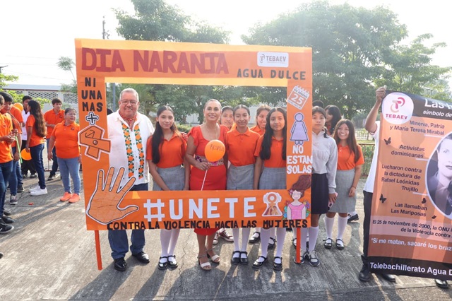 En el marco de la conmemoración del Día Naranja, y como cada mes se recuerda la importancia de eliminar toda violencia contra las mujeres, el sistema DIF municipal presidido por la Dra. Bertha Alicia Carro Barbosa y el ayuntamiento que dirige el Dr. Celestino Pino Guevara en coordinación con el telebachillerato de la comunidad de Agua Dulce realizaron una actividad dirigida a los jóvenes de esta institución.