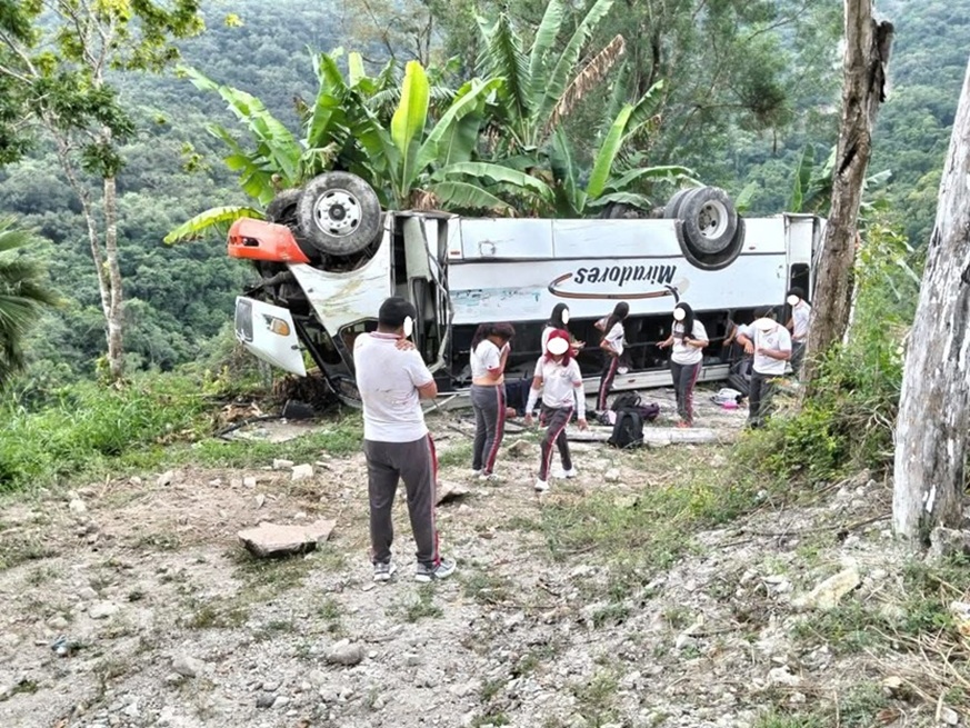 Una estudiante de preparatoria del Telebachillerato de Rancho Viejo (TEBAEV) murió y al menos otros 25 heridos (la mayoría de ellos estudiantes), luego de que la tarde de este miércoles 26 de noviembre un camión de pasajeros de la línea Autotransportes Miradores del Mar, volcó en la zona conocida como “La Barranca”, en el tramo que conecta a las comunidades de El Palmar Estación y El Roble, en el municipio de Emiliano Zapata.