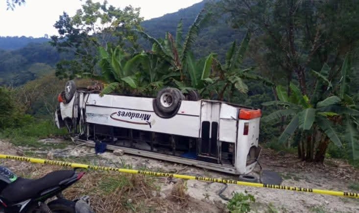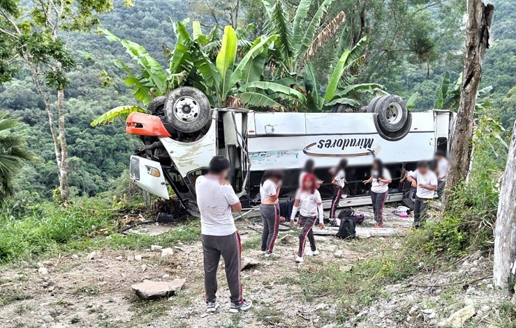 La unidad salió de la carpeta asfáltica y terminó volcada cerca de un barranco, quedando con las llantas hacia arriba. Varios estudiantes quedaron lesionados, por lo que testigos solicitaron apoyo al número de emergencias 911.