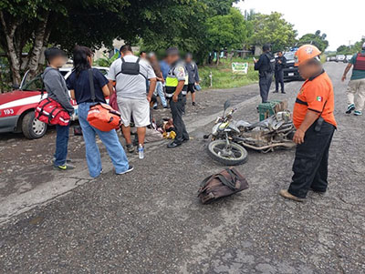 Pollero rodó sobre la cinta asfáltica, luego de que presuntamente un taxi se le atravesó, el accidente ocurrió en la mañana de este jueves, sobre la carretera federal Martínez – San Rafael.
